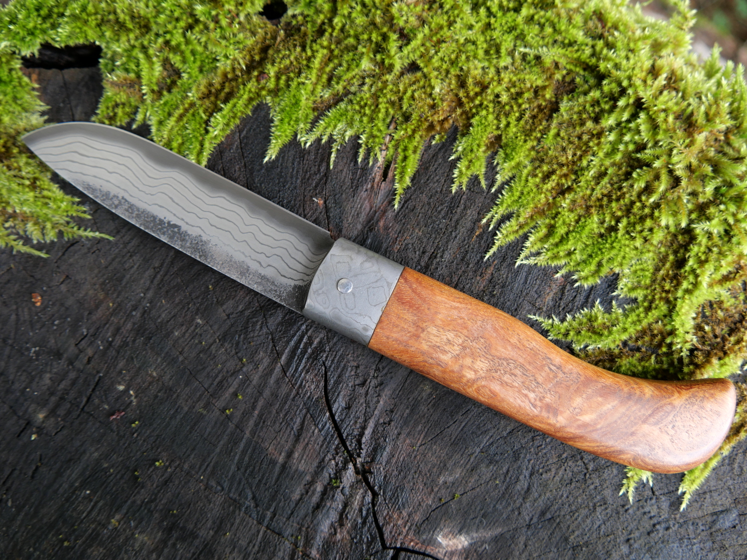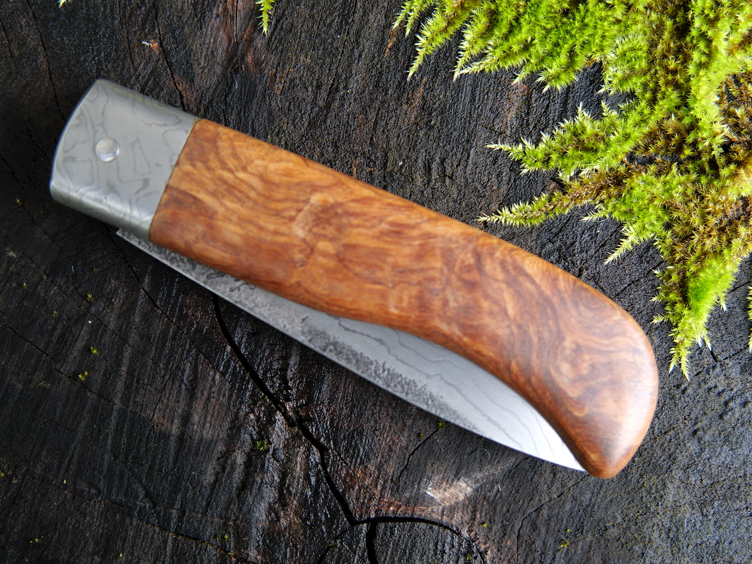 le-bugiste-manche-en-cytise-c2x12444804 "Le Bugiste" Avec lame en suminagashi tranchant white paper , manche en frêne et sa pochette cuir réalisée par Chantal Trocmé